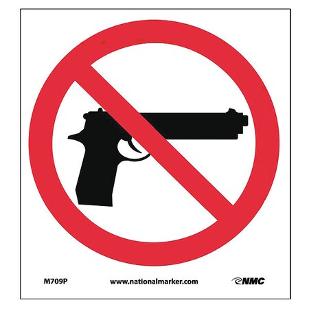 NMC M709P No Firearms Security Sign with Graphic, 8" Length x 8" Height, Pressure Sensitive Vinyl, Red/Black on White
