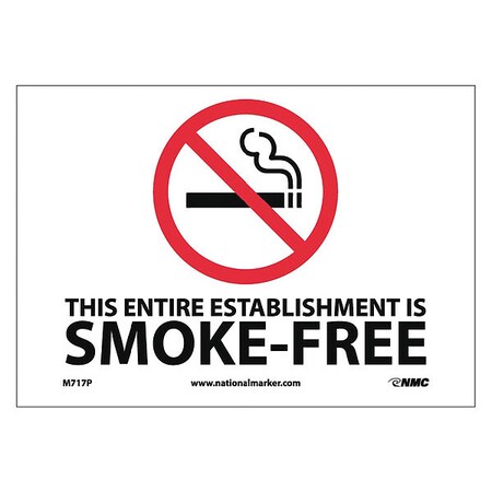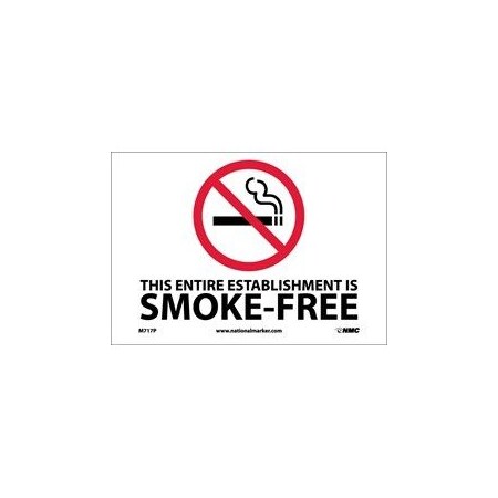 NMC M717P No Smoking Sign, Legend "THIS ENTIRE ESTABLISHMENT IS SMOKE-FREE" with Graphic, 10" Length x 7" Height, Pressure Sensitive Vinyl, Red/Black on White