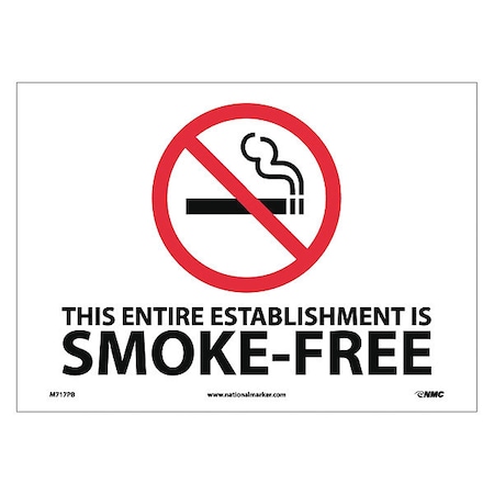 NMC M717PB No Smoking Sign, Legend "THIS ENTIRE ESTABLISHMENT IS SMOKE-FREE" with Graphic, 14" Length x 10" Height, Pressure Sensitive Vinyl, Red/Black on White