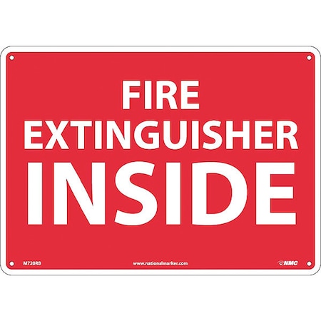 NMC M720RB Fire Sign, Legend "FIRE EXTINGUISHER INSIDE", 14" Length x 10" Height, Rigid Polystyrene Plastic, White on Red