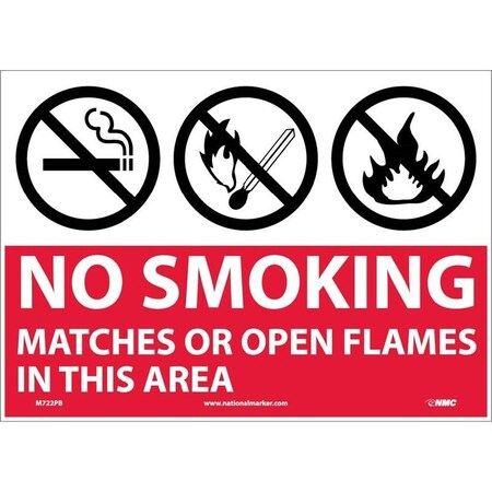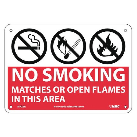 NMC M722A NO SMOKING - MATCHES OR OPEN FLAMES IN THIS AREA Sign – 10 in. x 7 in. Standard Aluminum Safety Sign with Graphic, White Text on Red Base