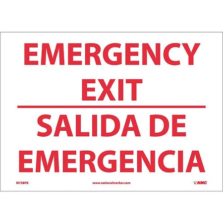 NMC M738PB Bilingual Exit/Entrance Sign, Legend "EMERGENCY EXIT", 14" Length x 10" Height, Pressure Sensitive Vinyl, Red on White