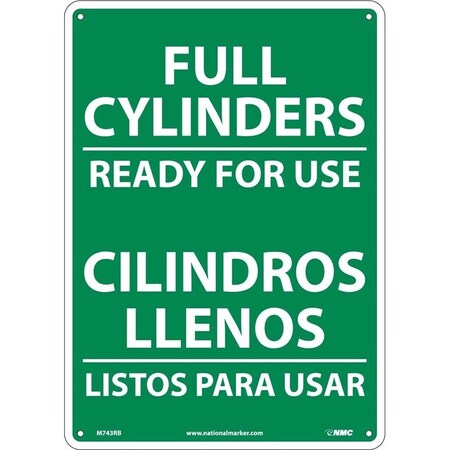 NMC M743PB Bilingual Cylinder Sign, Legend "FULL CYLINDERS READY FOR USE", 10" Length x 14" Height, Pressure Sensitive Vinyl, White on Green