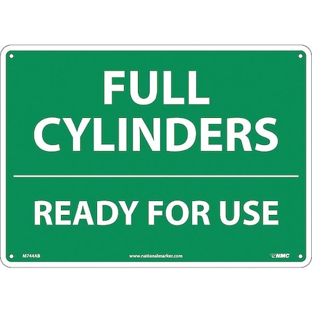 NMC M744AB Cylinder Sign, Legend "FULL CYLINDERS READY FOR USE", 14" Length x 10" Height, Aluminum 0.40, White on Green