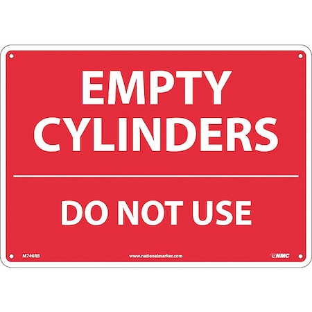 NMC M746RB Cylinder Sign, Legend "EMPTY CYLINDERS DO NOT USE", 14" Length x 10" Height, Rigid Polystyrene Plastic, White on Red