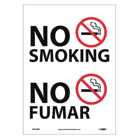 NMC M749PB NO SMOKING Bilingual Sign - 14 in. x 10 in., Black Text on White, PS Vinyl Smoking Prohibition Sign with Graphic