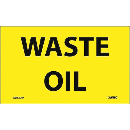 NMC M751AP Hazardous Materials Sign, Legend "WASTE OIL", 5" Length x 3" Height, Pressure Sensitive Vinyl, Black on Yellow (Pack of 5)