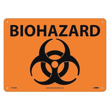NMC M758AB Biohazard Sign, Legend "BIOHAZARD" with Graphic, 14" Length x 10" Height, Aluminum 0.40, Black on Orange