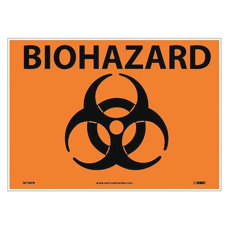 NMC M758PB Biohazard Sign, Legend "BIOHAZARD" with Graphic, 14" Length x 10" Height, Pressure Sensitive Vinyl, Black on Orange