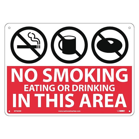 NMC M760AB NO SMOKING EATING OR DRINKING IN THIS AREA Sign – 14 in. x 10 in. Aluminum Safety Sign with Graphic, White Text on Red Base