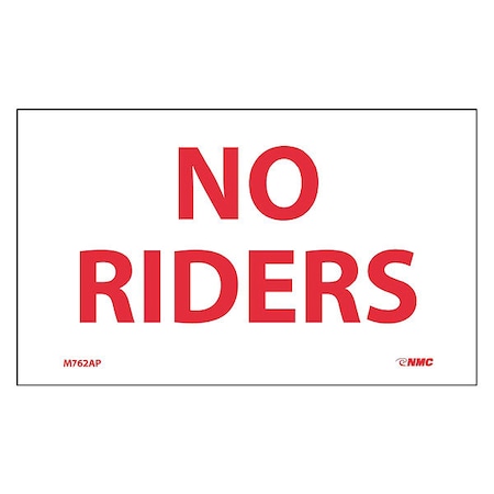 NMC M762AP Flammable/Combustible Sign, Legend "NO RIDERS", 5" Length x 3" Height, Pressure Sensitive Vinyl, Red on White (Pack of 5)