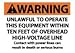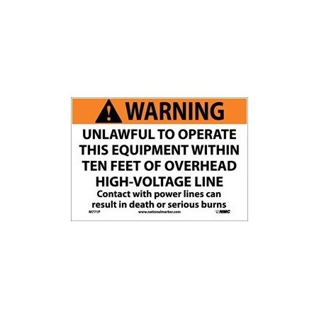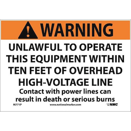 NMC M771P General Safety Label, Legend "WARNING UNLAWFUL TO OPERATE THIS EQUIPMENT...", 10" Length x 7" Height, Pressure Sensitive Vinyl, Orange/Black on White