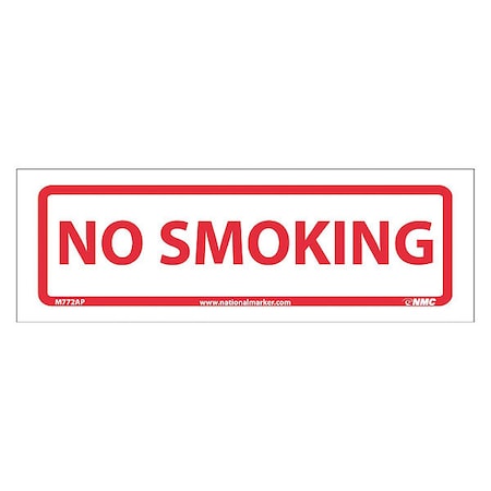 NMC M772AP NO Smoking Label - 12 in. x 4 in, Red Text on White Base, Adhesive Backed Vinyl Label