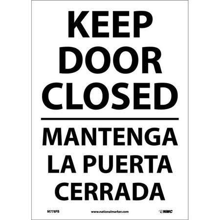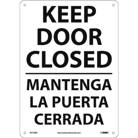 NMC M778RB Bilingual Exit/Entrance Sign, Legend "KEEP DOOR CLOSED", 10" Length x 14" Height, Rigid Polystyrene Plastic, Black on White