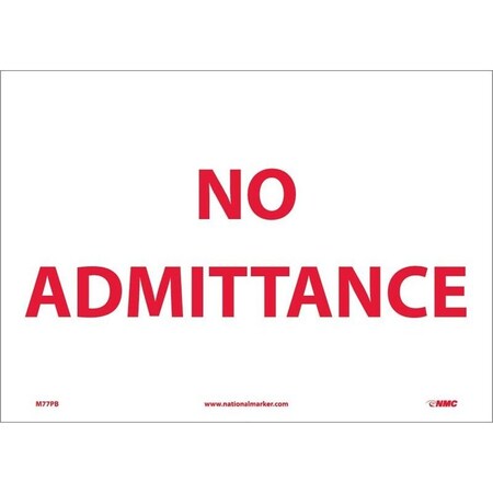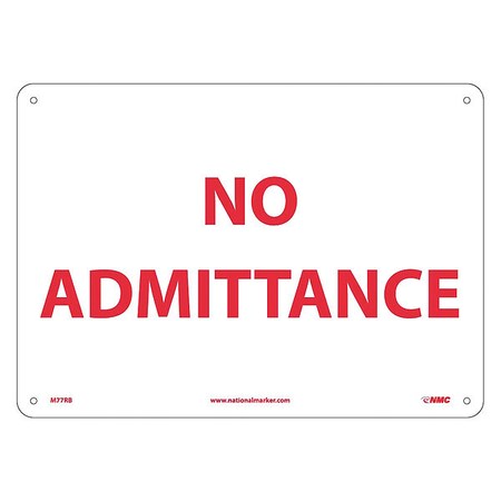 NMC M77RB Exit/Entrance Sign, Legend "NO ADMITTANCE", 14" Length x 10" Height, Rigid Polystyrene Plastic, Red on White