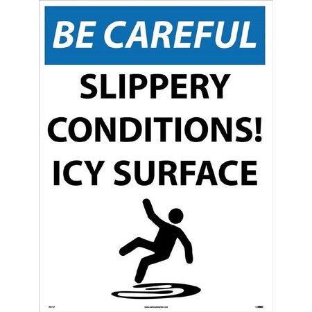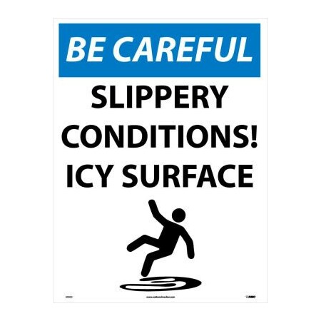 NMC National Marker Corp. M812F Be Careful Slippery Conditions! ICY Surface Sign, 32 Inch X 24 Inch, Corrugated Plastic