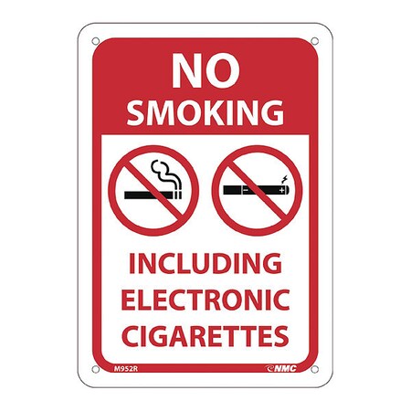 NMC M952R Danger NO Smoking Including Electronic Cigarettes Sign - 7 in. x 10 in, Red/Black Text on White/Red, Plastic Sign with Graphics
