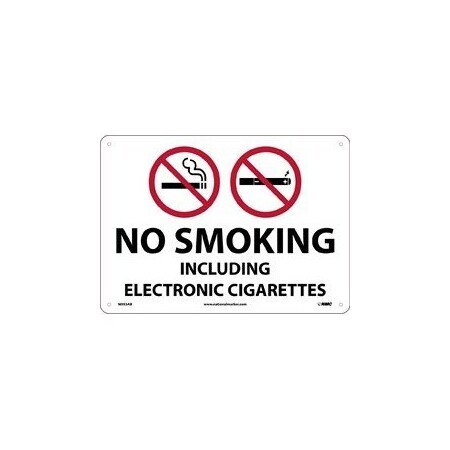 NMC M953P NO Smoking Including Electronic Cigarettes Sign – 10 in. x 7 in. PS Vinyl Safety Sign with Graphic, Black/Red Text on White Base