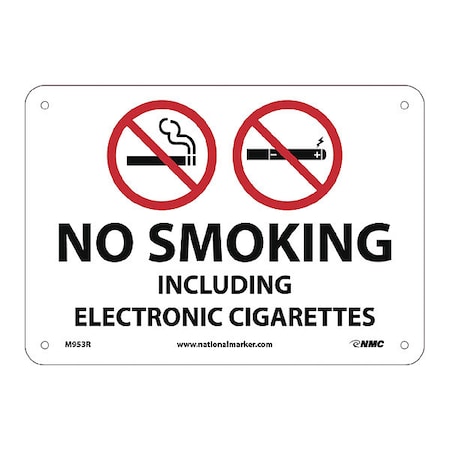 NMC M953R NO Smoking Including Electronic Cigarettes Sign - 10 in. x 7 in, Black Text on White, Plastic Sign with Graphics