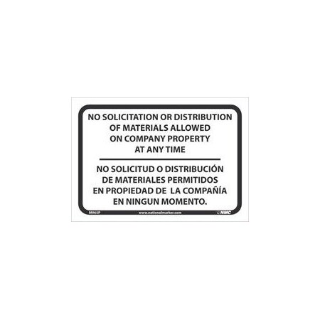 Order M965PB by NMC "No Solicitation or Distribution" Sign - US Mega Store