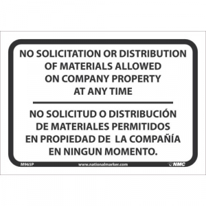 Order M965R by NMC "No Solicitation or Distribution" Sign - US Mega Store