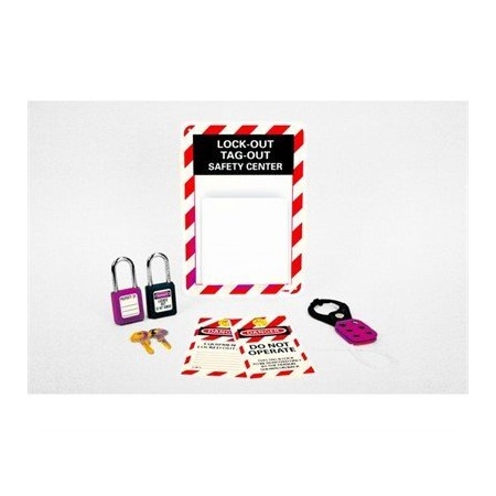 NMC - National Marker Company Lockout Center, Micro, Equipped (1) 15 1/2 x13 plexi-glass board (1) LOTag1 pack of tags with fasteners (1) 1 hasp (1) 1 3/4 padlock