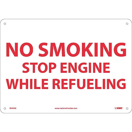 NMC MNRAB NO Smoking – Stop Engine While REFUELING Sign – 14 in. x 10 in. Standard Aluminum Safety Sign with Red Text on White Base