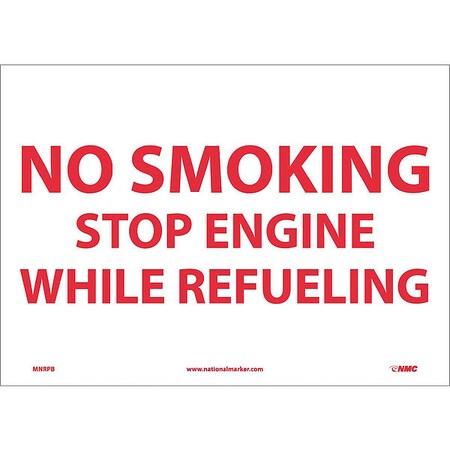NMC MNRPB NO Smoking – Stop Engine While REFUELING Sign – 14 in. x 10 in. PS Vinyl Safety Sign with Red Text on White Base