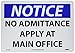 | Feature | Header "NOTICE" and Legend "NO ADMITTANCE APPLY AT MAIN OFFICE" |