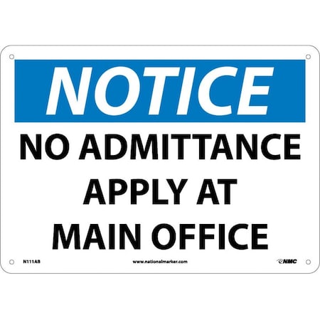 NMC N111AB NOTICE - NO ADMITTANCE - APPLY AT MAIN OFFICE – 14 in. x 10 in. Standard Aluminum Notice Sign with White/Black Text on Blue/White Base
