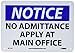 | Feature | Header "NOTICE" and Legend "NO ADMITTANCE APPLY AT MAIN OFFICE" |
