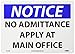 | Feature | Header "NOTICE" and Legend "NO ADMITTANCE APPLY AT MAIN OFFICE" |