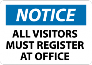 - Header "NOTICE" and Legend "ALL VISITORS MUST REGISTER AT OFFICE"