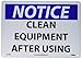 | Feature | Header "NOTICE" and Legend "CLEAN EQUIPMENT AFTER USING" |