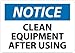 NMC N124P OSHA Sign, Legend "NOTICE - CLEAN EQUIPMENT AFTER USING", 10" Length x 7" Height, Pressure Sensitive Vinyl, Black/Blue on White