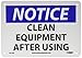 - Header "NOTICE" and Legend "CLEAN EQUIPMENT AFTER USING"
