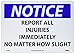 | Feature | Header "NOTICE" and Legend "REPORT ALL INJURIES IMMEDIATELY NO MATTER HOW SLIGHT" |