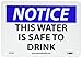 - Header "NOTICE" and Legend "THIS WATER IS SAFE TO DRINK"