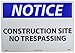 - Header "NOTICE" and Legend "CONSTRUCTION SITE NO TRESPASSING"