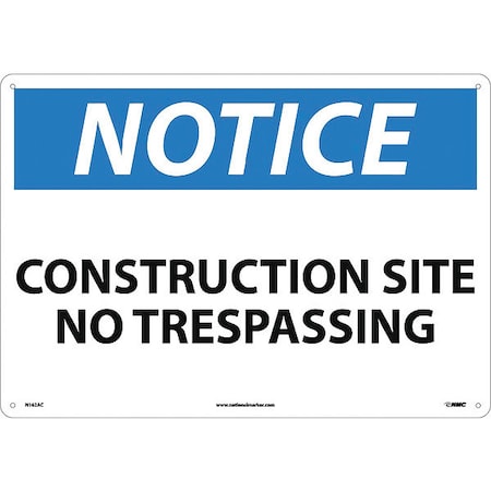 NMC N162AC OSHA Sign, Legend "NOTICE - CONSTRUCTION SITE NO TRESPASSING", 20" Length x 14" Height, Aluminum, Black/Blue on White