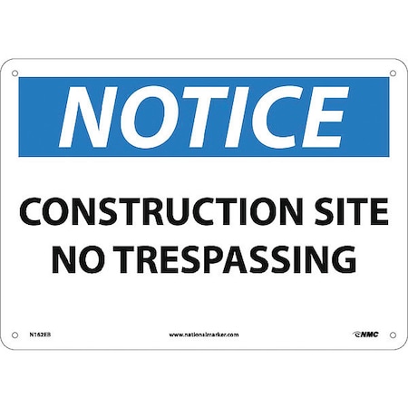 NMC N162EB NOTICE - CONSTRUCTION SITE - NO TRESPASSING - 14 in. x 10 in. Fiberglass Notice Sign with White/Black Text on Blue/White Base