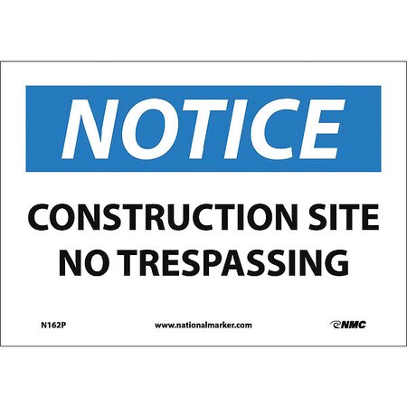NMC N162P NOTICE - CONSTRUCTION SITE - NO TRESPASSING - 10 in. x 7 in. PS Vinyl Notice Sign with White/Black Text on Blue/White Base