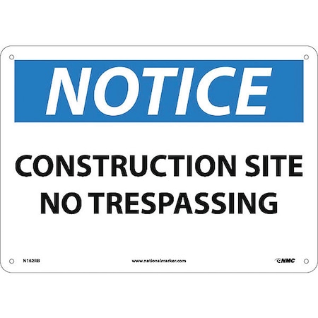 NMC N162RB NOTICE - CONSTRUCTION SITE - NO TRESPASSING - 14 in. x 10 in. Rigid Plastic Notice Sign with White/Black Text on Blue/White Base