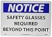 - Visible Composition: the legend “NOTICE - SAFETY GLASSES REQUIRED BEYOND THIS POINT” is printed on this safety message notice sign, is in clear and bold font. This makes the letters legible, giving the notice greater visibility