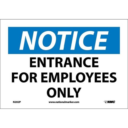 NMC N202PB NOTICE - ENTRANCE FOR EMPLOYEES ONLY Sign – 14 in. x 10 in. Rectangle, Vinyl Notice Signage with White/Black Text on Blue/White Base