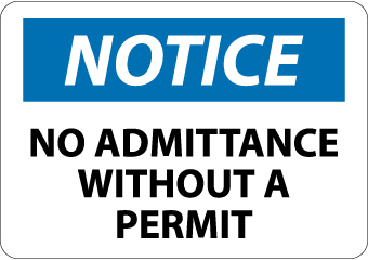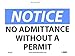 - Header "NOTICE" and Legend "NO ADMITTANCE WITHOUT A PERMIT"