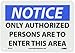 | Feature | Header "NOTICE" and Legend "ONLY AUTHORIZED PERSONS ARE TO ENTER THIS AREA" |