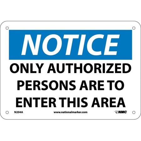 NMC N204A NOTICE - ONLY AUTHORIZED PERSONS ARE TO ENTER THIS AREA Sign – 10 in. x 7 in. Aluminum Notice Signage with White/Black Text on Blue/White Base