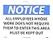 | Feature | Header "NOTICE" and Legend "ALL EMPLOYEES WHOSE WORK DOES NOT REQUIRE THEM TO ENTER THIS AREA MUST BE KEPT OUT" |