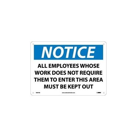 NMC N207PB NOTICE - ALL EMPLOYEES WHOSE WORK DOES NOT REQUIRE THEM TO ENTER THIS AREA MUST BE KEPT OUT Sign - 14 in. x 10 in. PS Vinyl Notice Signage